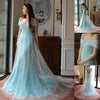 Blue Off Shoulder Unique Lace Tulle Online Long Prom Dresses, WG713