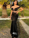 Off Shoulder Black Appliques Sweetheart Satin Mermaid Evening Gowns Prom Dresses, WGP198