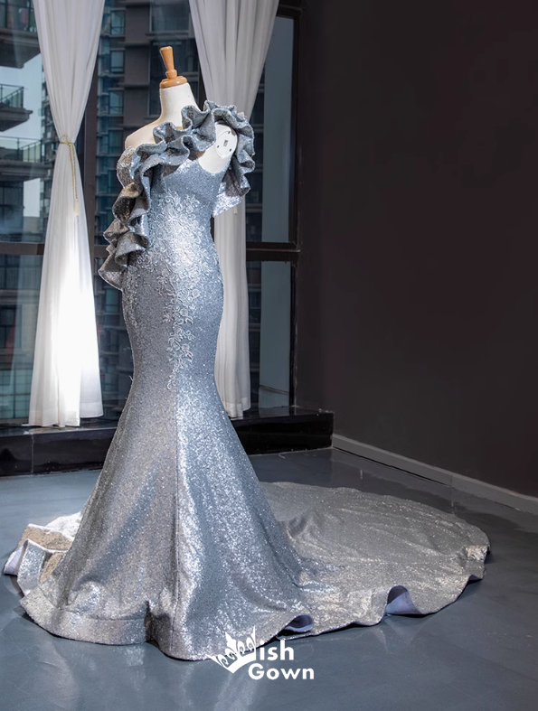 Elegant One Shoulder Embroidery Mermaid Lace up Back Party Dress Long Prom Dresses to Impress, WGP948