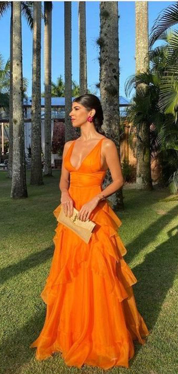 Elegant Orange V-Neck A-Line Long Prom Dress Ideas, Evening Party Dresses,WGP1641