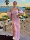 Elegant Pink Beaded Side Slit Sheath Long Party Dress Prom Dresses ,WGP1024