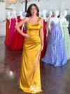 Sexy Gold One Shoulder Side Slit Mermaid Long Prom Dresses ,WGP1045