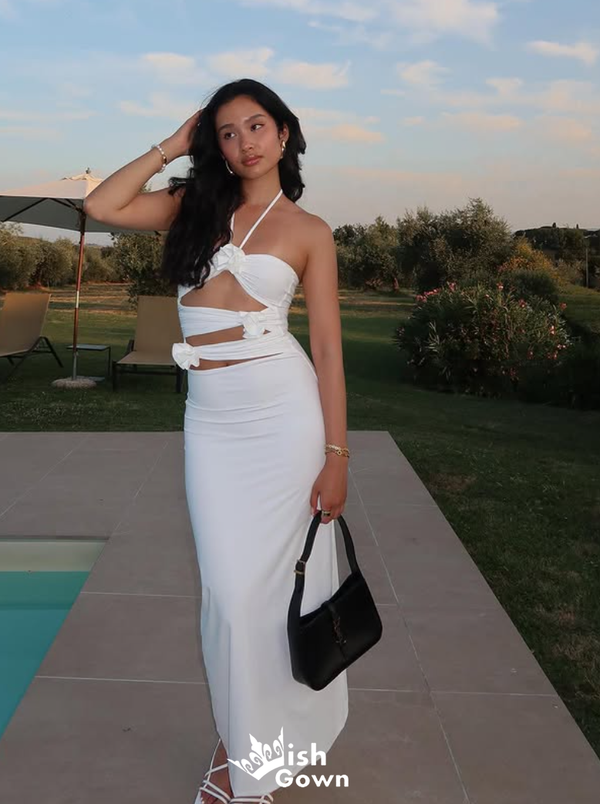 Sexy White Halter Mermaid Long Party Dress Prom Dresses ,WGP1018