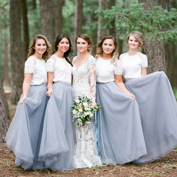 Lace Short Sleeves Tulle Long Wedding Party Dresses Cheap Charming Bridesmaid Dresses, WG387