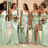 Classy Green Satin Bridesmaid Dress Sexy One Shoulder Ruched Side Slit Long Wedding Guest Gow,WGM479