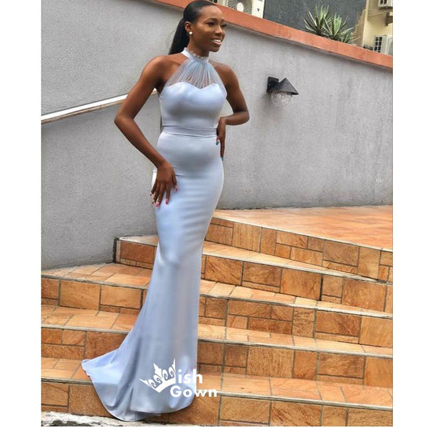 Sexy Blue Mermaid Halter Sleeveless Maxi Long Bridesmaid Dresses Online, WGM162