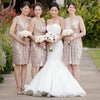 Champagne Gold Sequin Off Shoulder V-Neck Shinning Knee-Length Cheap Custom Make High Quality Bridesmaid Dresses, WG124