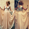Cheap Champagne Off Shoulder Sparkle V-Neck Long Chiffon Charming Party Evening Prom Dresses, PD0080