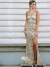 Sexy Gold Sequin Mermaid Shinning Spaghetti Straps Backless Prom Dress, WG1011