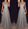 Grey Beaded Top Shinning Tulle Elegant Cheap Long Prom Dresses, WG718