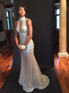 Unique Design Sexy See Through High Neck Backless Beaded Long Prom Dre