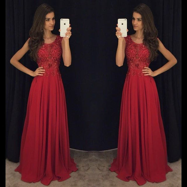 Red Cheap Formal A Line Modest Floor Length Chiffon Prom Dress, WG287
