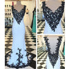 White Black Applique Seen Througb Back Long Prom Dresses, WG595