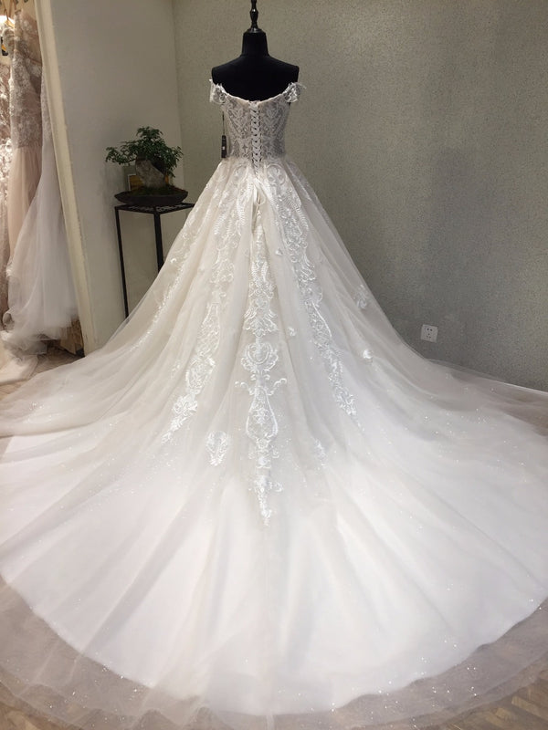Off the Shoulder Tulle Applique Charming Long Affordable Bridal Wedding Dress, WG678