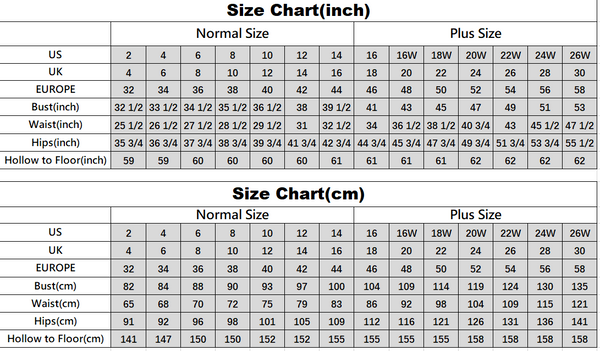 | US Size | UK Size | Bust | Waist | Hips | Hollow to Floor With Shoes On |