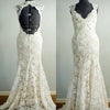 Vantage Beige Lace Open Back Long Mermaid Wedding Party Dresses, Bridal Gown, WD0042