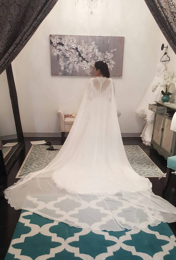 Stand up straight with shoes on and measure from the the center of the collarbone,down to where the hem of the dress shouldhit(excluding anytrain).