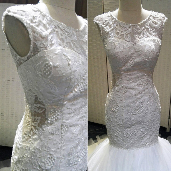 White Mermaid Open Back Lace Up Charming Beaded Long Wedding Bridal Dresses, WG625
