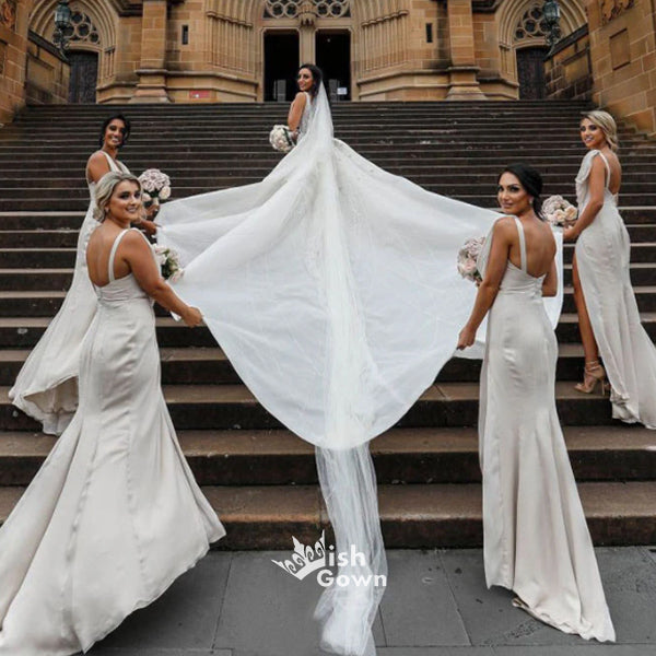 V-Neck Chiffon Pleats Sleeveless Floor-length Side Split Bridesmaid Dresses, WGM044